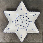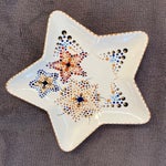 Kies jouw favoriet: kerstster met kerstballen, hartjes, rondjes sjablonen en ga middels stipstokjes of stippennen en porseleinverf op jouw origineel gestipt serviesstuk stipjes maken. Kerstworkshop prijs € 39,50 p.p.